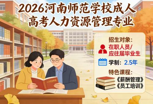 作为河南省属重点大学、师范类标杆,河南师范大学成人高考人力资源管理专业依托 “教育学 + 管理学” 双学科优势,打造 “理论 + 实操” 的培养体系,成为在职人士转型管理岗、提升竞争力的优选,2026 年延续非脱产模式,适配职场人学习节奏。